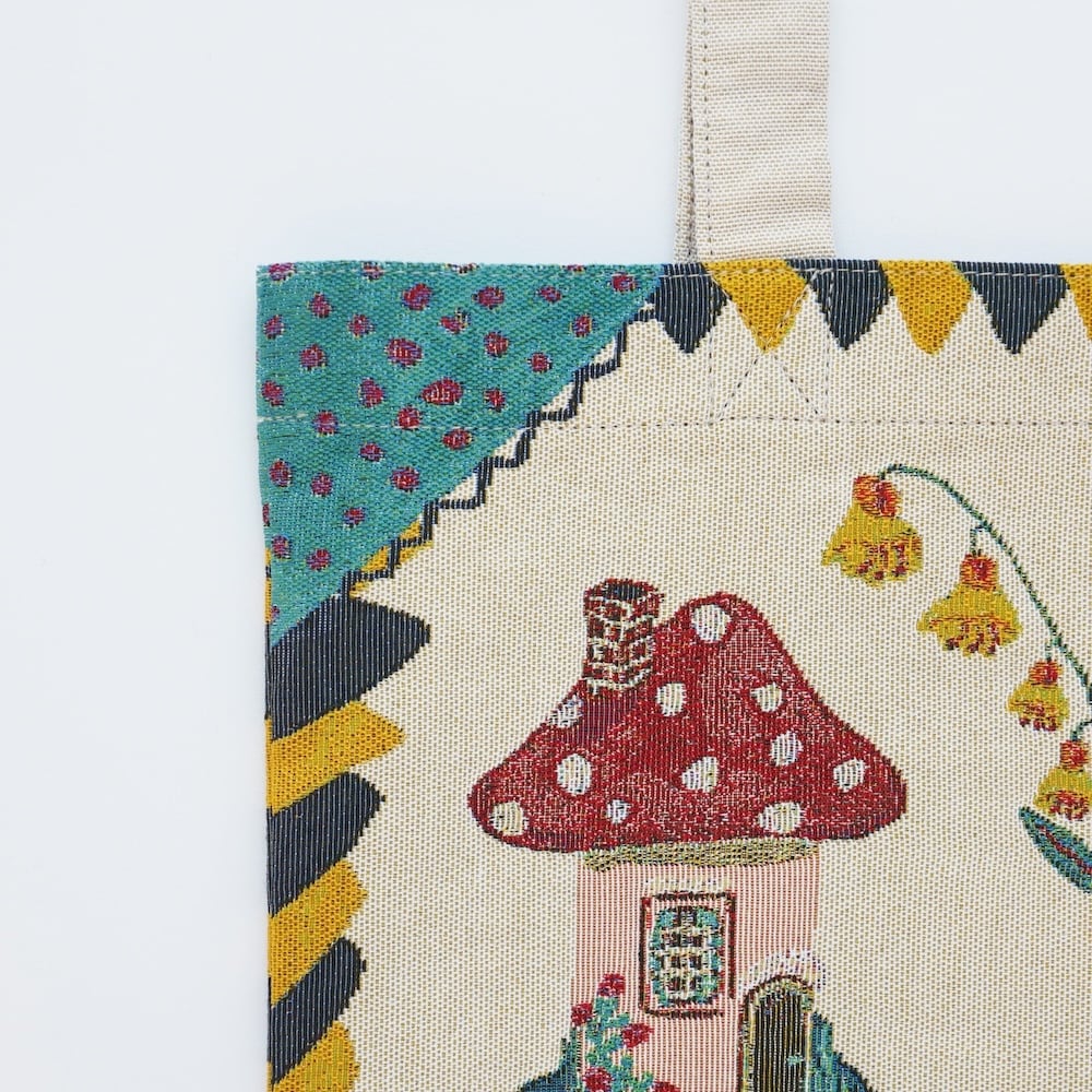 このトートバッグは、表裏同じ柄の織りで、どちらの面でもかわいくお使いいただけます。