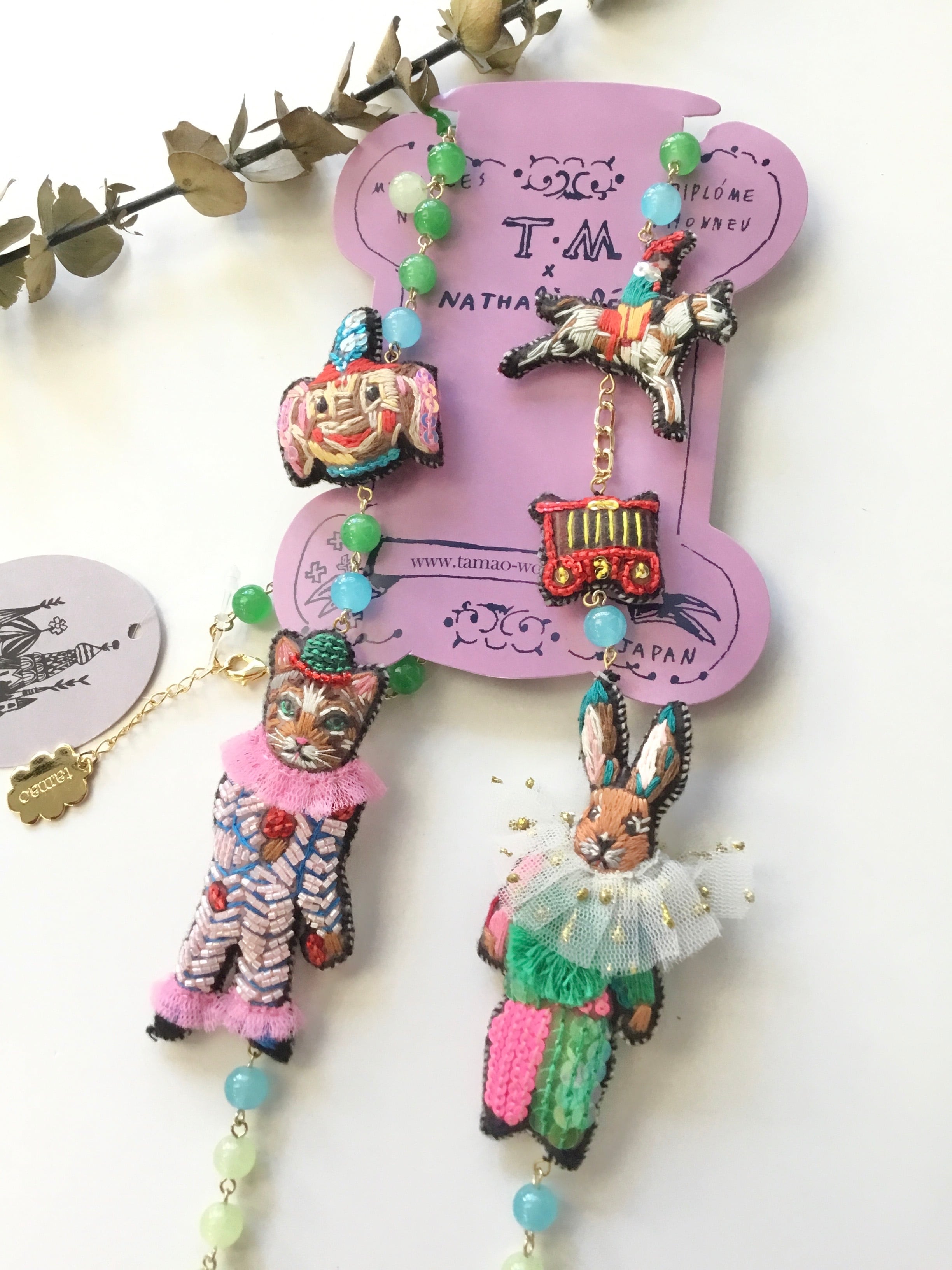 ナタリーレテの描いた動物たちが、TAMAO WORLDの世界観で刺繍のアクセサリーになりました。